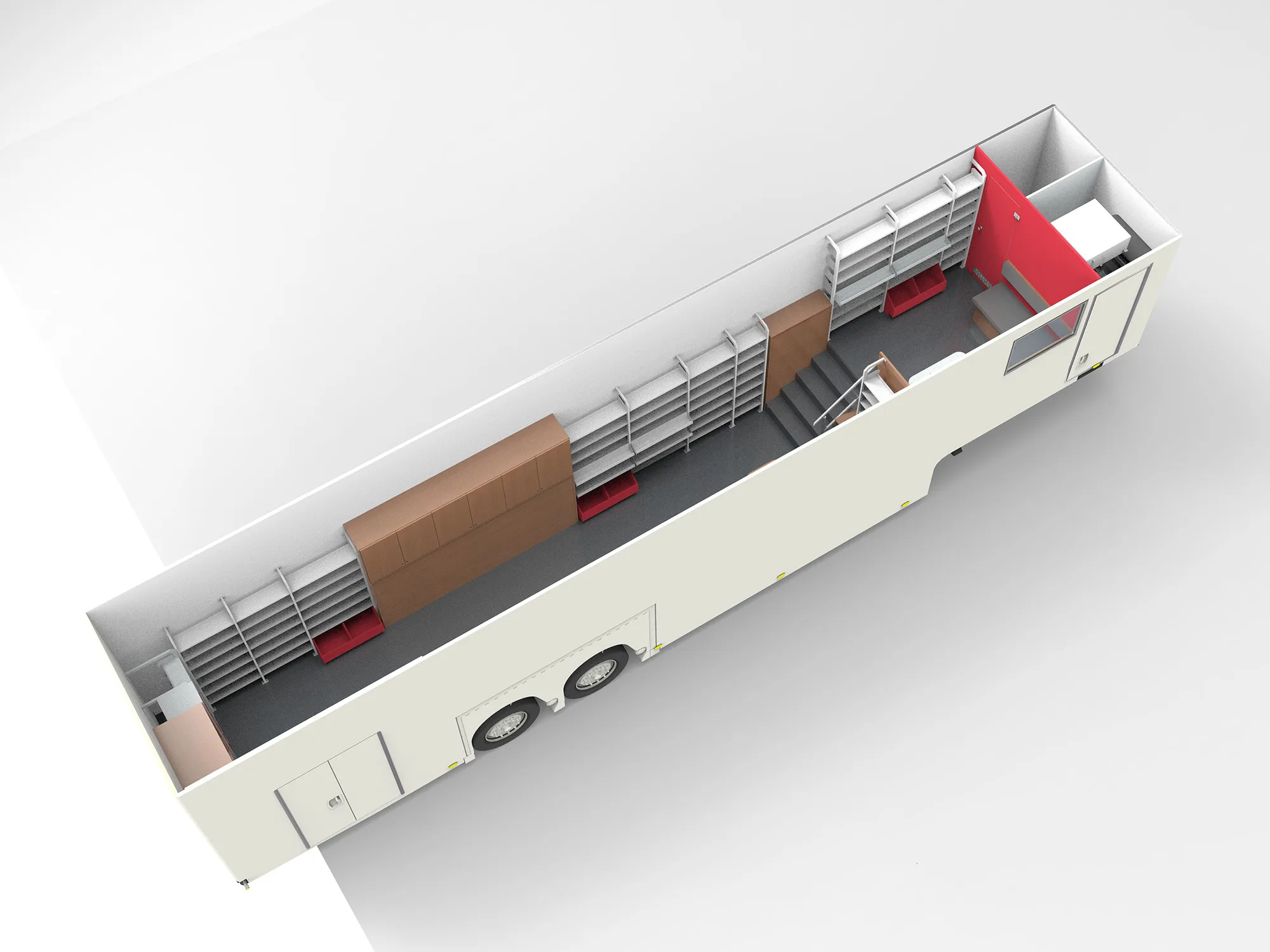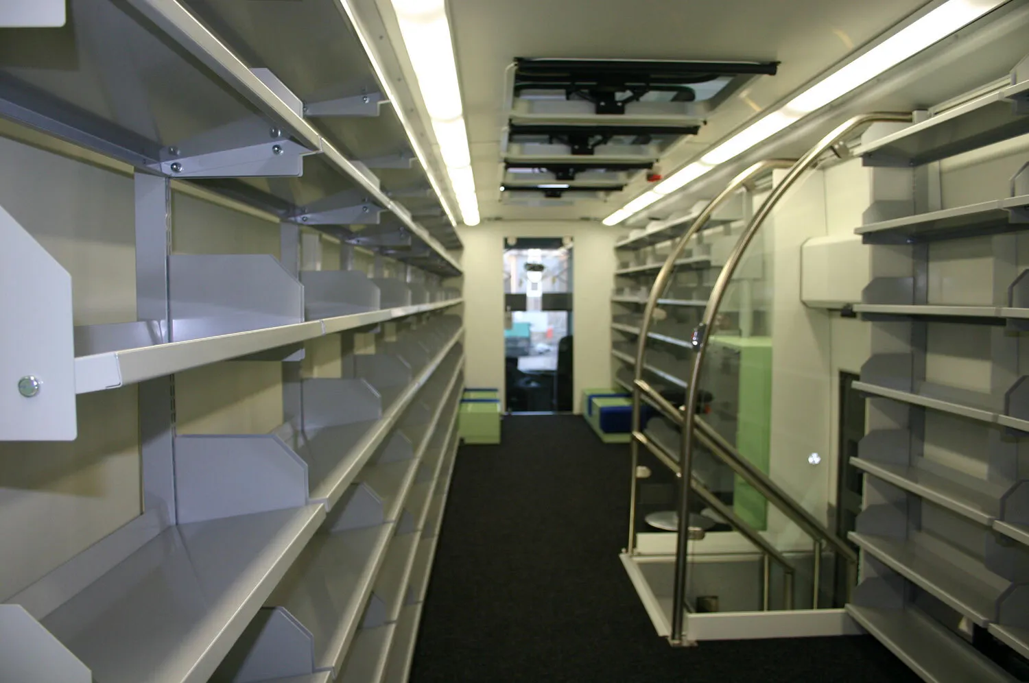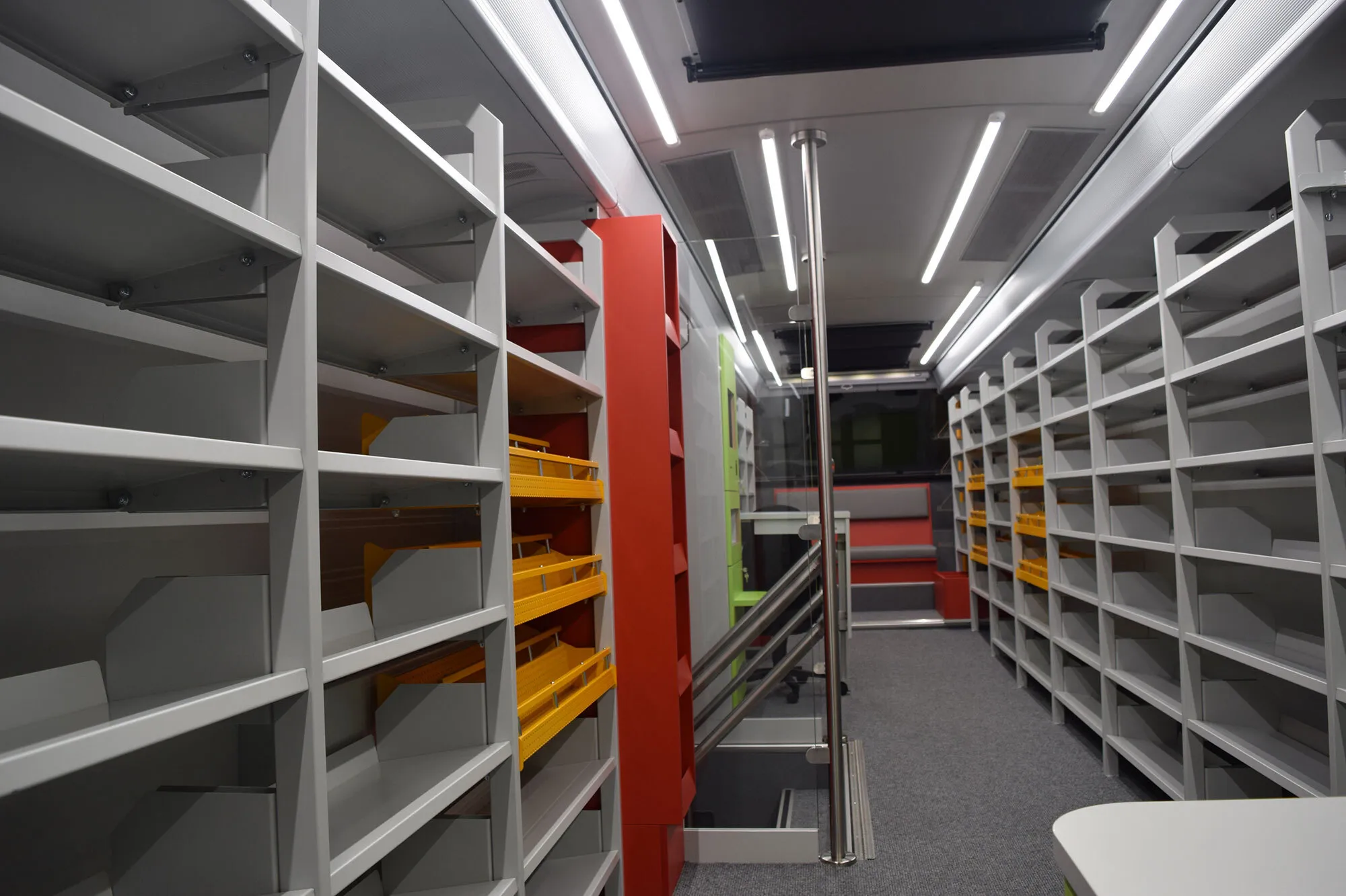 Fahrbücherei Fahrzeug Innenausbau mit Regalsystem